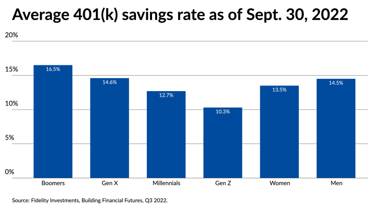 Men continued to save at higher rates than women (14.5% versus 13.5%), while pre-retired baby boomers saved at the highest levels (16.5%).